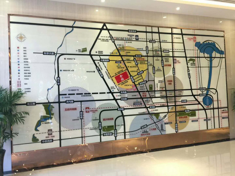 常见的是售楼部挂在墙上的,有着各个区域介绍的一块电子屏,那个就是区位模型。